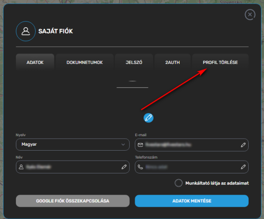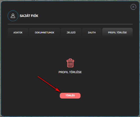 A felhasználói fiók törlését a felületre bejelentkezve lehet kezdeményezni a saját fiók beállításain